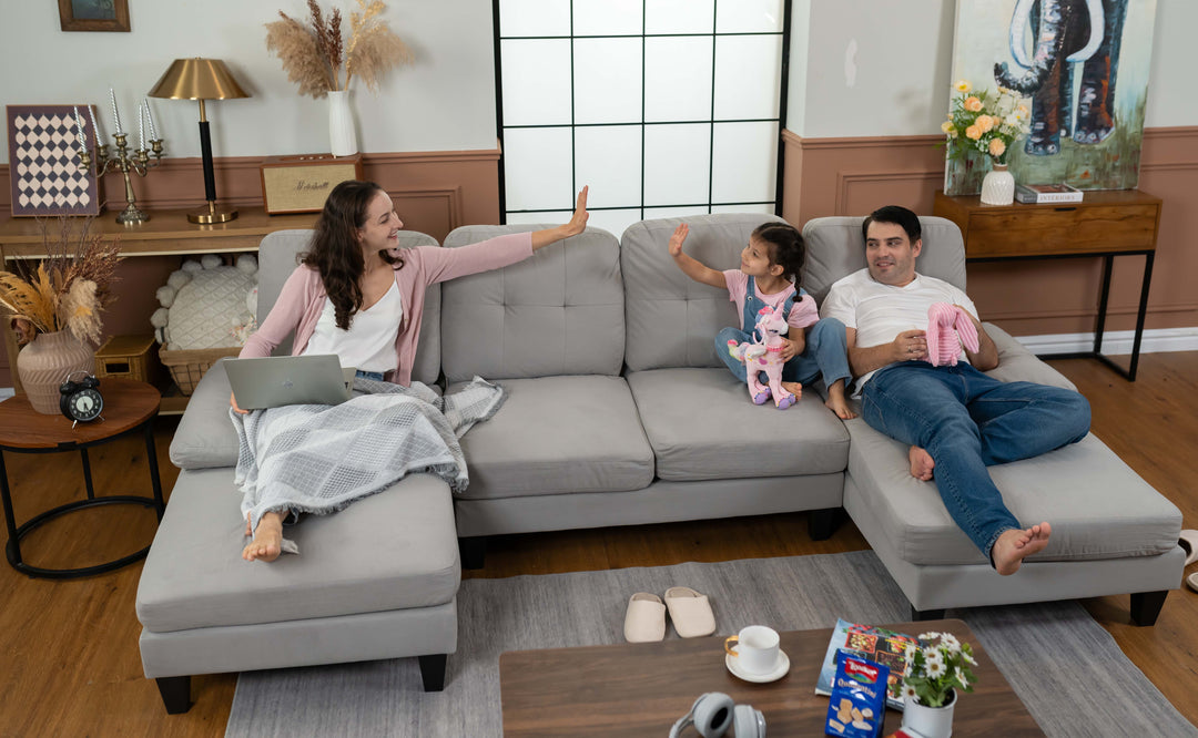 The sofa seamlessly combines style and comfort, featuring luxurious linen fabric enveloping the double-sided design of the three-person configuration. And it doesn't stop there. The ultra-plush 3-layered cushions provide unparalleled support and comfort, ensuring you can relax for hours without fatigue. And when rest calls, simply recline and indulge in a rejuvenating nap, as this sofa offers the ideal sanctuary for unwinding.