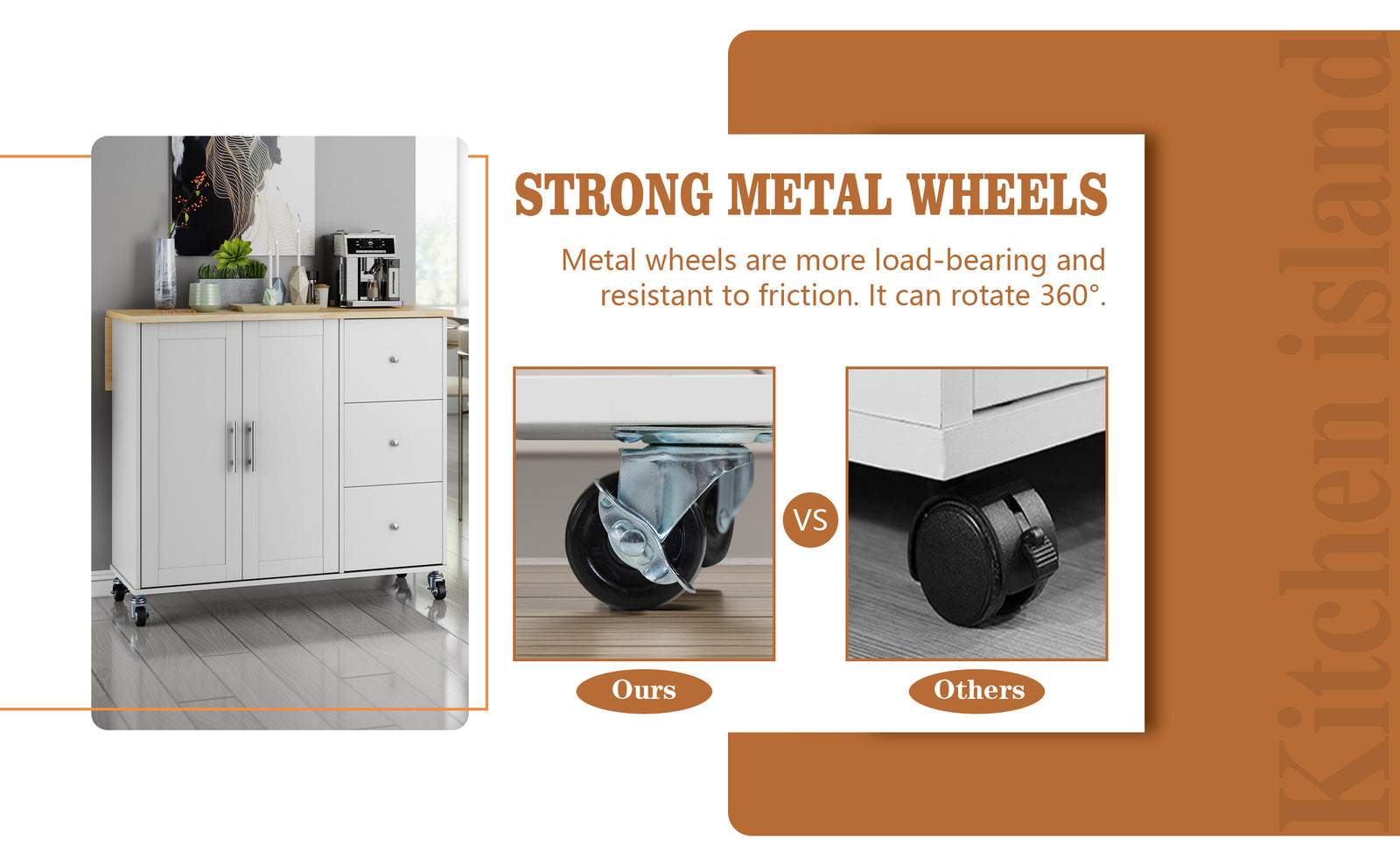 • 【Durable Material】Our kitchen carts are made of high quality wood and metal, and the thick rubberwood top gives you enough spaces to prep, serve, and stow, the countertop is easy to clean with damp wipes. The whole cart’s frame is waterproof, allows a long-lasting using life.