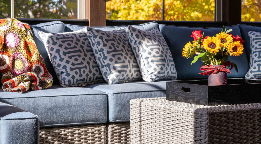 2.Cover or store inside during inclement weather. The wicker frame is weather-resistant, while the cushions are not.