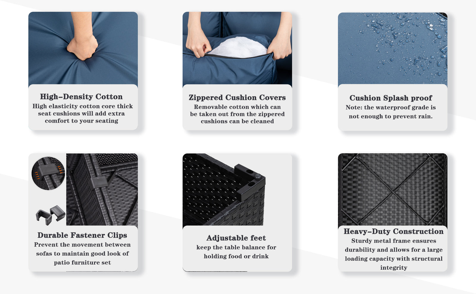 Crafted with a sturdy steel frame, the sofa is built to last, while the waterproof and breathable wicker exterior ensures it can withstand any weather conditions. The soft sofa cushions are made with weather-resistant fabric and a plush inner core, ensuring comfort no matter how long you relax. Plus, with its customizable design, you can arrange and rearrange the sofa to your liking, creating the perfect outdoor oasis for yourself and your friends.